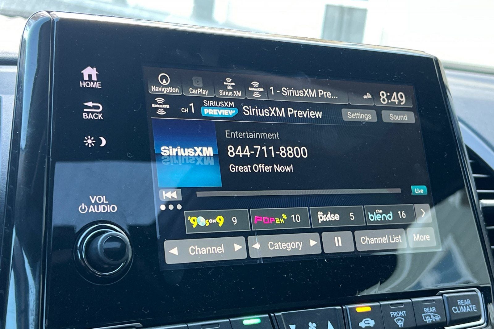- Radio: 160-Watt AM/FM/HD/SiriusXM Audio System -inc: 7 speakers including subwoofer, Speed-Sensitive Volume Compensation (SVC), Honda Satellite-Linked Navigation System w/voice recognition, Honda HD digital traffic, Bluetooth® HandsFreeLink, Bluetooth® streaming audio, MP3/auxiliary input jack, Radio Data System (RDS), SMS text message function, 2.5-amp USB audio interface port in center console, 2.5-amp USB charging port in front console, (2) 2.5-amp USB charging ports in second row, 2.5-amp USB charging ports in third row, CabinControl remote compatibility, 8" display audio w/high-resolution electrostatic touch-screen and customizable feature settings, Apple CarPlay, Android Auto, CabinTalk in-car PA system, HDMI interface, HondaLink, mobile hotspot capability, illuminated steering wheel-mounted audio and navigation controls and body-colored fin-type roof-mounted antenna, SiriusXM requires a subscription after any trial period, If you decide to continue your SiriusXM service at the end of your trial subscription, the plan you choose will automatically renew and bill at then-current rates until you call SiriusXM at 1-866-635-2349 to cancel, See our customer agreement for complete terms at www.siriusxm.com, Fees and programming subject to change, Available in the 48 contiguous United States and DC